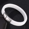 Fashion Men Bracelet Bangles White Braided Leather Trendy Steel Clasp Male Female Jewelry Gift