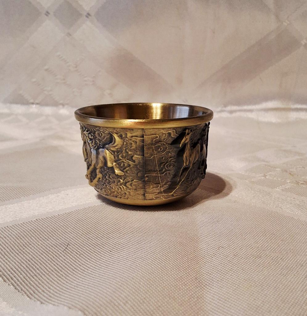 Bronze Wine Cup Retro Style Horse To Success Pattern Metal Wine Glass Hand Crafted Communion