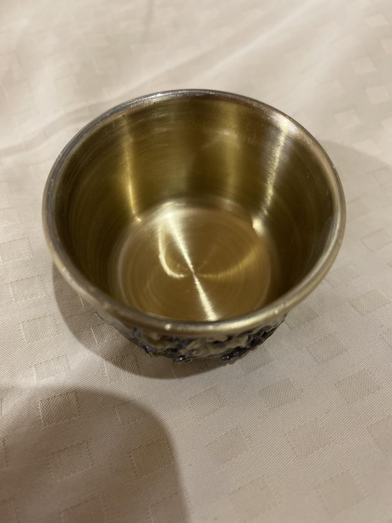 Interesting cup, small, heavy. I wonder if it can be used for drinking