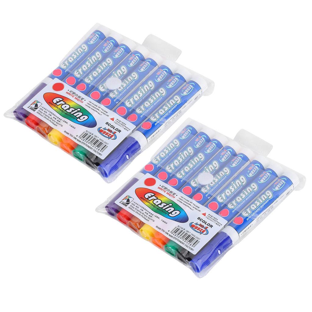 2 Sets 8 Colors Dry Erasable Whiteboard Pen Colorful Fiber Nib Markers Sets for School