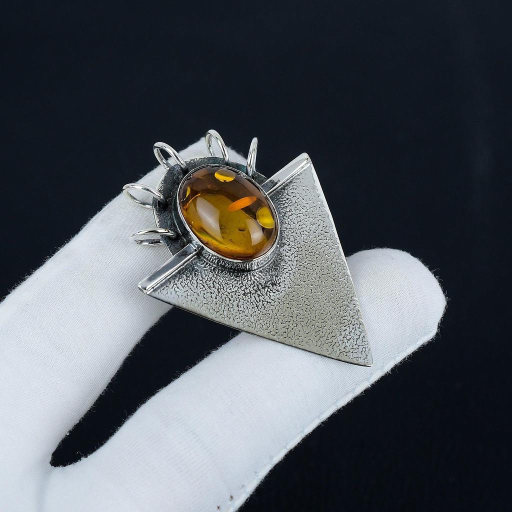 Natural Baltic Amber Gemstone Silver Pendant In 925 Sterling Silver- Handmade Design, Everyday Wear Jewelry, Unique Pendant Mother's Day Gift