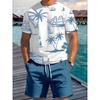 2 Piece Summer Casual Everyday Men's Short Sleeve Shorts Set Hawaiian Print Men's T-shirt Outdoor Sports Men's Beach Shorts