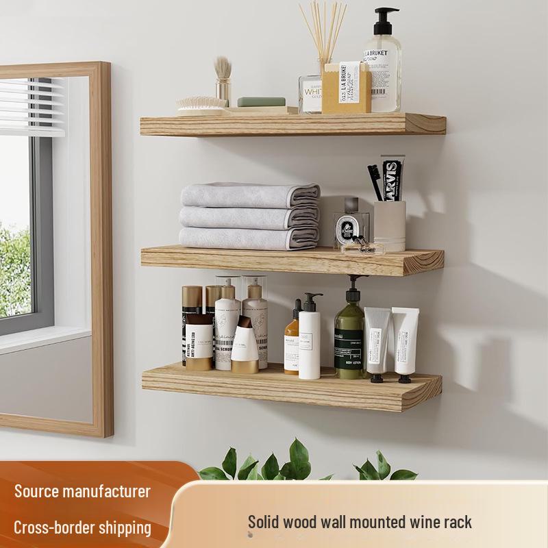 Solid Wood Wall-Mounted Bookshelf: Home Living Room Decor Shelf