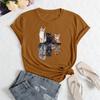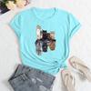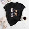 Summer Women's Three Cat Printed Loose Round Neck Casual Cotton Short Sleeves T-Shirts Women's
