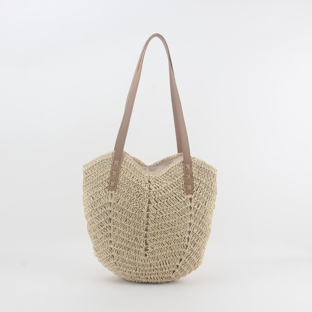 Hand-Woven Straw Shoulder Bag: Women's Fashion Beach Backpack