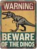 Funny Beware of The Dinosaur Tin Sign Retro Metal Wall Decor Poster Vintage Sign for Home Bar Garage Garden Patio Porch Bathroom