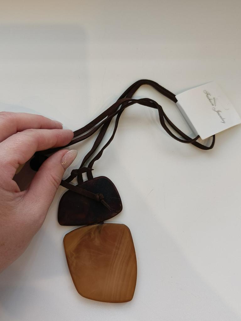 Beautiful ethnic-style pendant. The size is impressive, the material it is made of is unusual, lightweight, with a beautiful pattern. The cord seemed too thick to me, it has an unpleasant smell, I hope it will dissipate.