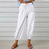 Summer Women's Fashion Solid Color Wide Leg Pants Cotton Hemp Casual Trousers Oversized Elastic Waist Pocket Long Pants