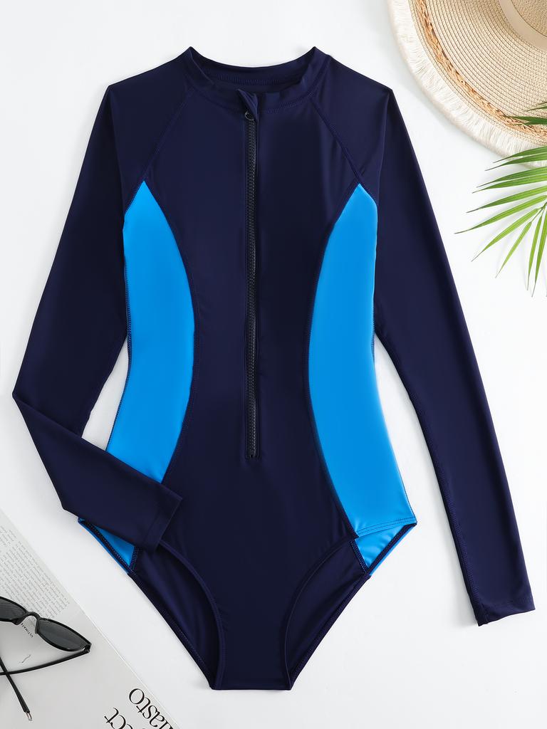 Women's Swimsuit Long Sleeve Surfing Suit Zipper Style Swimsuit One-piece Swimsuit Printed Bikini