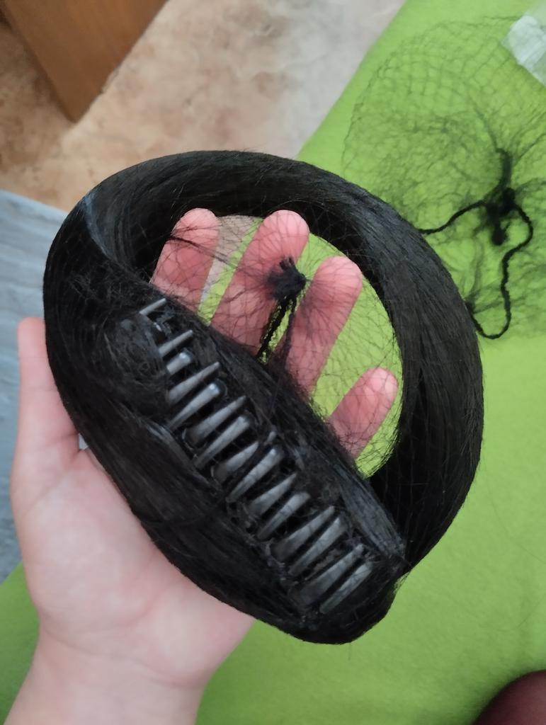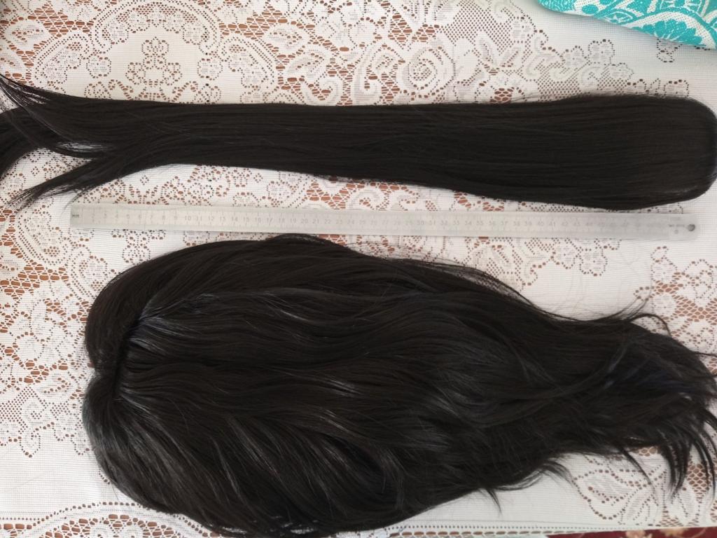 Wonderful wig, consists of two parts, the set also includes a wig cap and a long red ribbon, the quality is excellent. The hair seems real, there is a regulator for ease of wearing and size selection. Easy to care for, has good volume, delivery was fast and the packaging was reliable, I recommend and thank the seller and Juma.