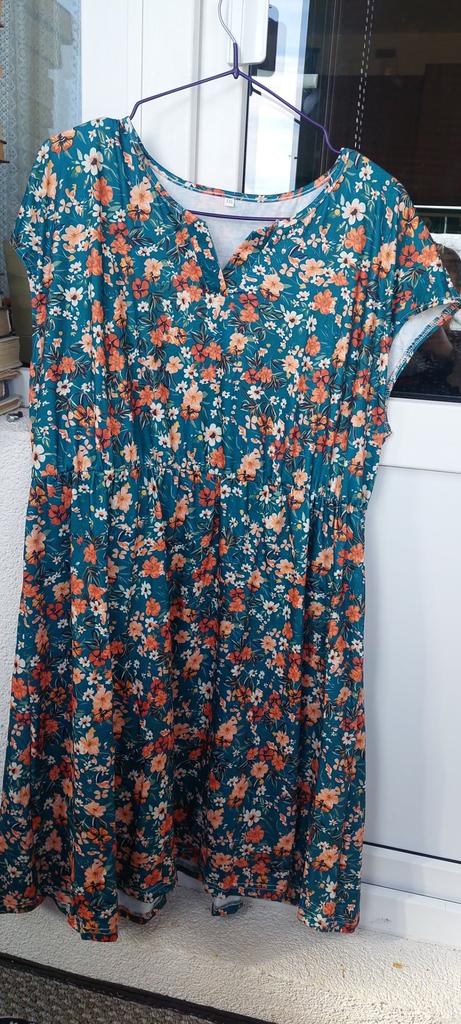 Summer New Women's Elegant Floral Print Elastic Waisted V-Neck Short Sleeve Dress