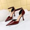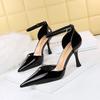 European & American High Heel Pointed Patent Leather One-Strap Sandals with Sexy Hollow Design