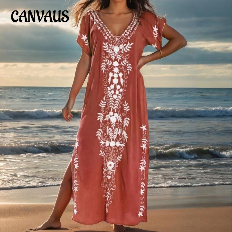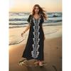 Plus Size Women's Beach Holiday Blouse Vintage Style Embroidered Long Dress