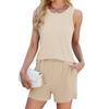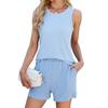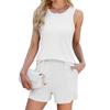 Spring Summer Women's Solid Colour Round Neck Vest Pocket Shorts Casual Suit