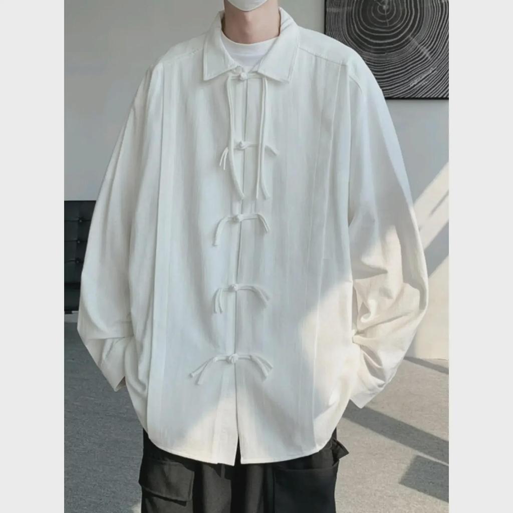 Men's Chinese Style Long-Sleeve White Hanfu Scholar Shirt - Trendy Zen Taoist Fashion