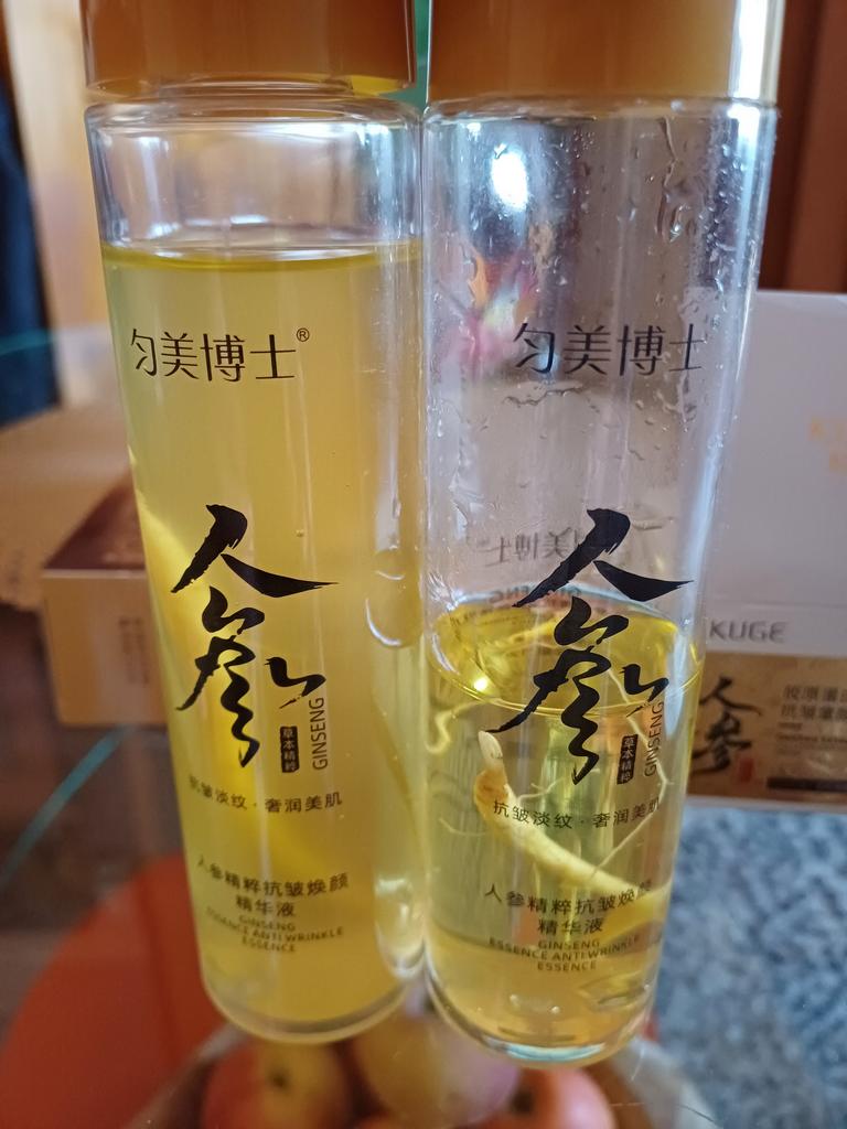 The order arrived on time and well-packaged. I'm ordering this oil for the second time because it moisturizes, tones, and smooths the skin well. The consistency is a bit watery, very similar to a toner. But this is even better, as it can be used for cleansing the face, toning, and nourishing. Inside the jar is a ginseng root.. Thanks.