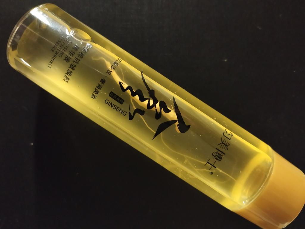 Not bad oil, cool presentation, a ginseng root floats in the oil