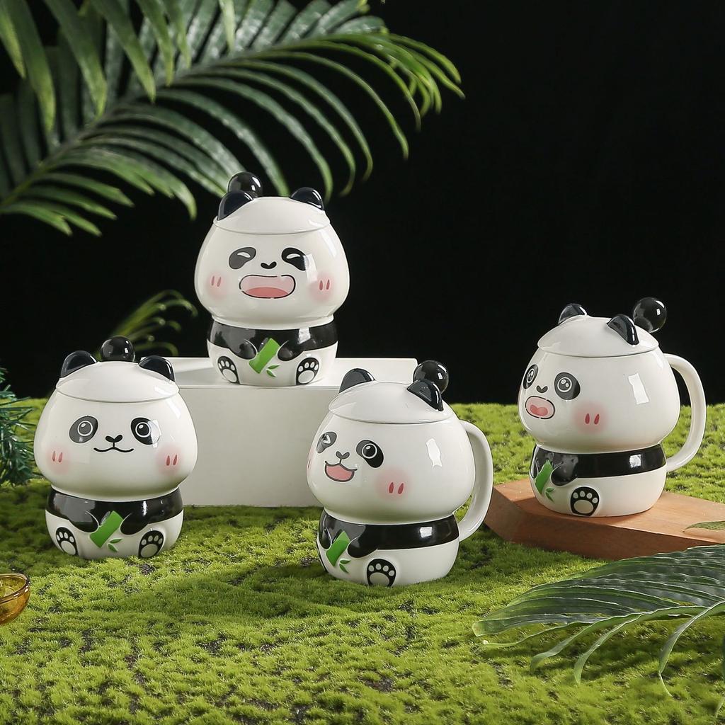 Cute Cartoon Little Panda Styling Ceramic Cup Creative Mug with Lid Spoon Event Gift Souvenir Gift Cup