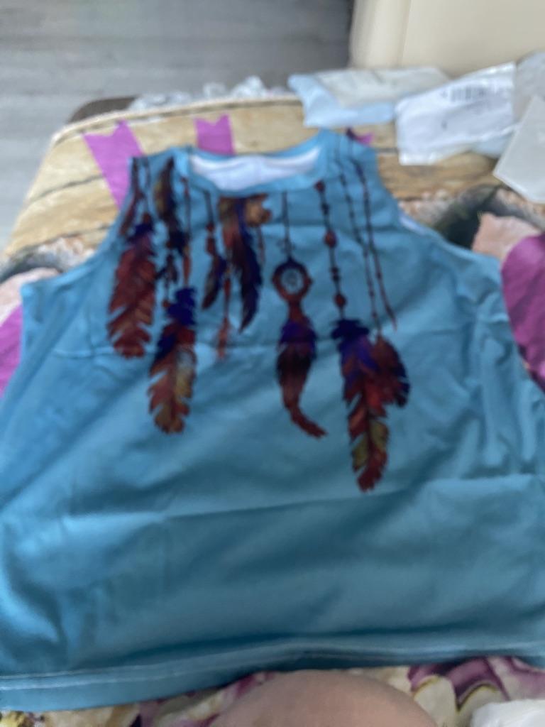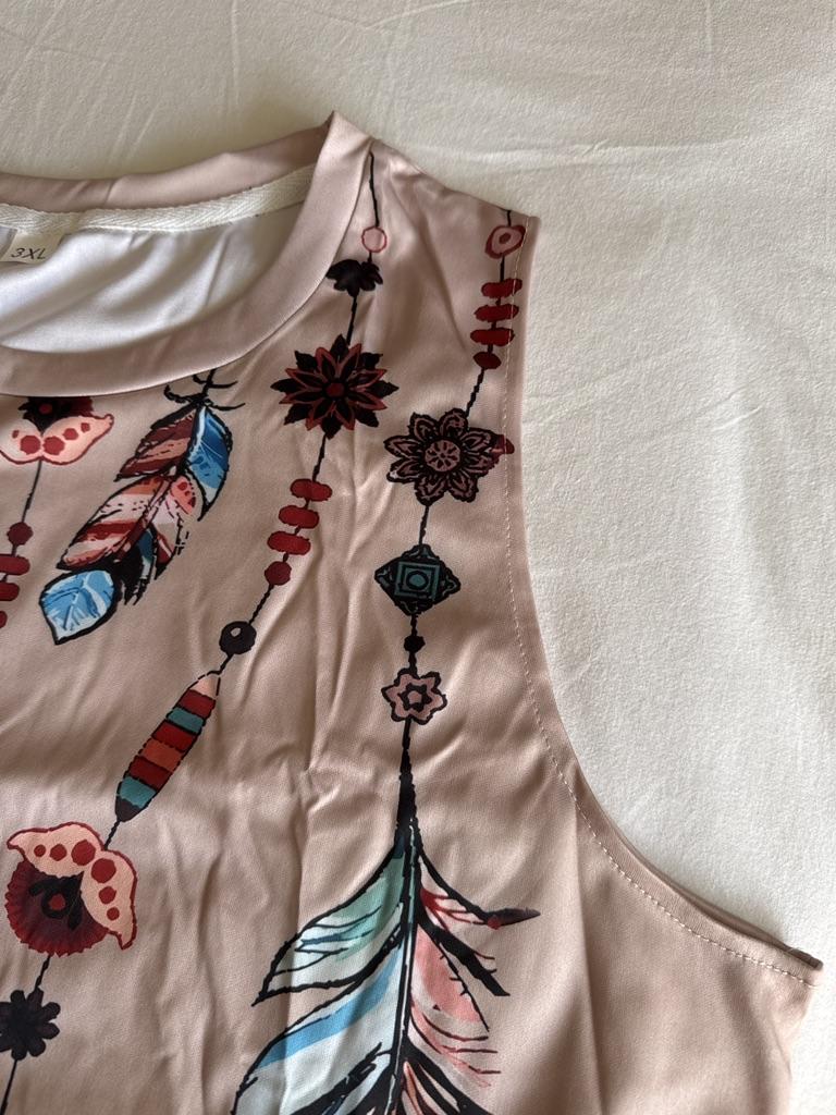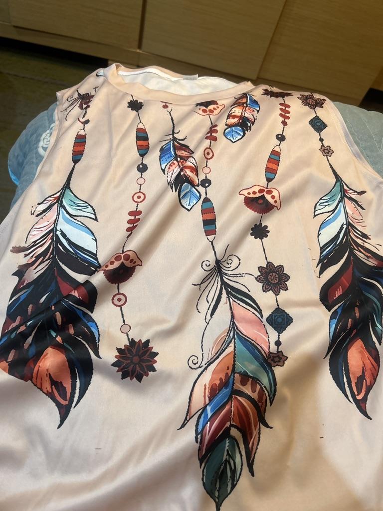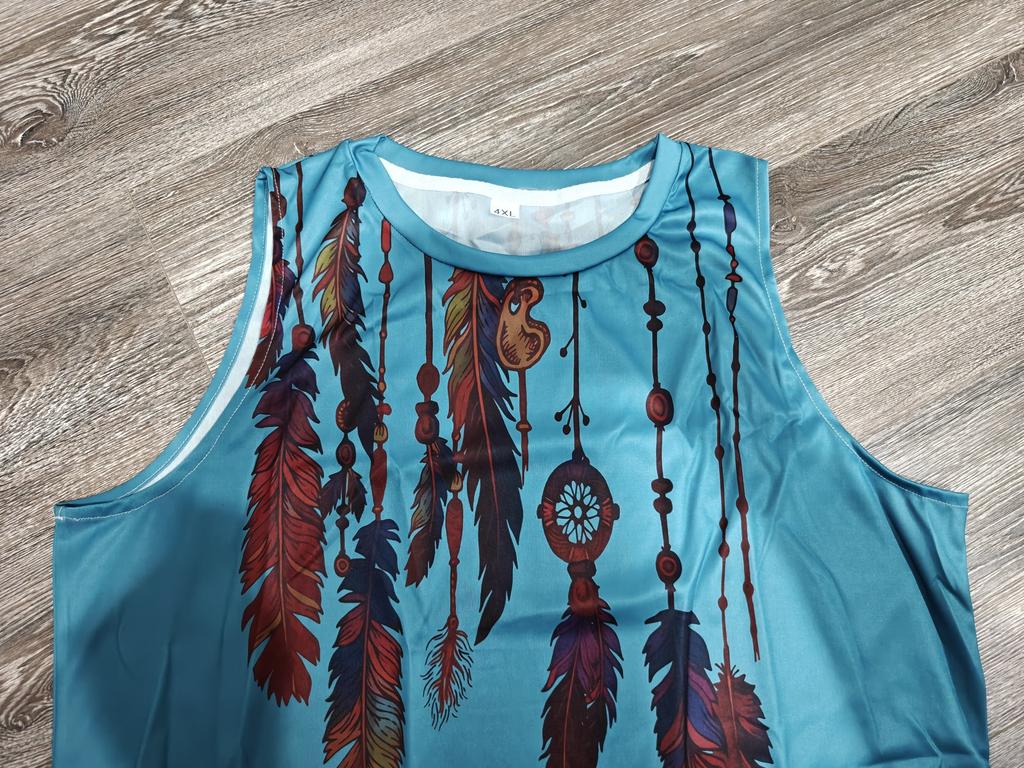 Feather Print Tank Tops Women's Fashion Sleeveless Vest Sexy Casual Vintage Tanks Top Casual Crew Neck Tops Womens Clothing 2024
