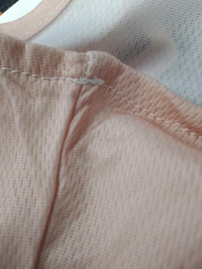 The tank top is more pink. There are defects.