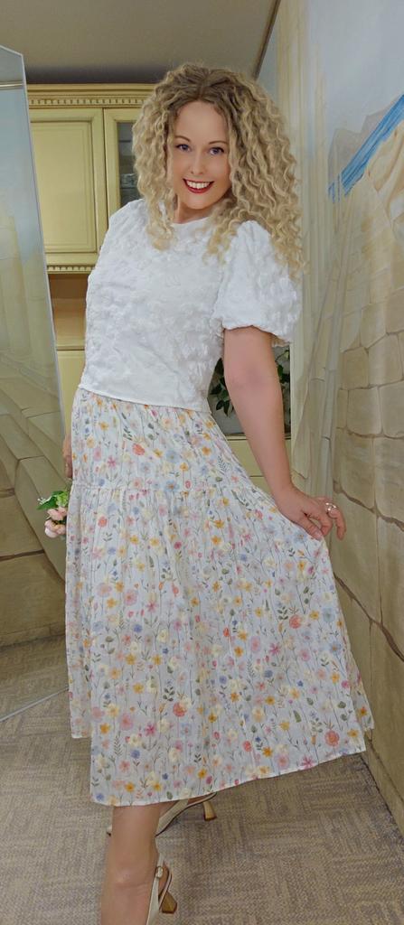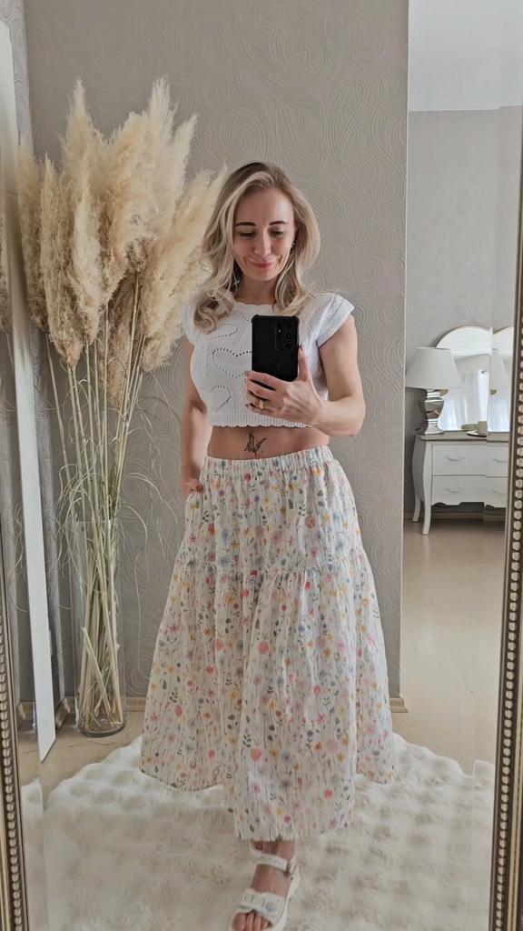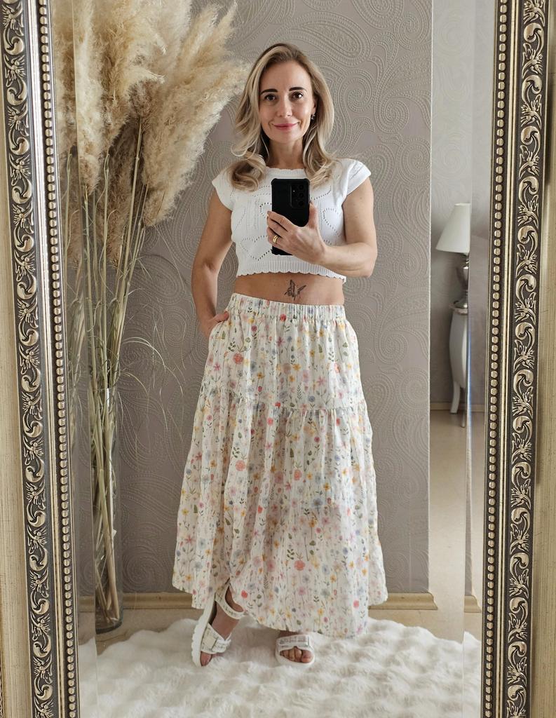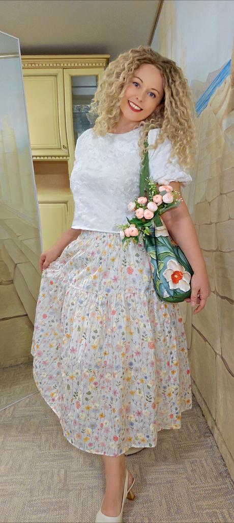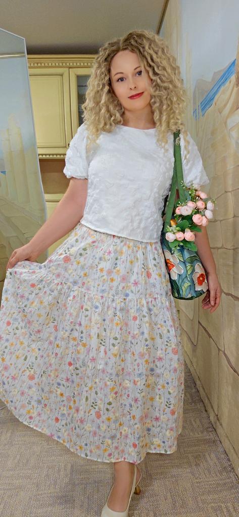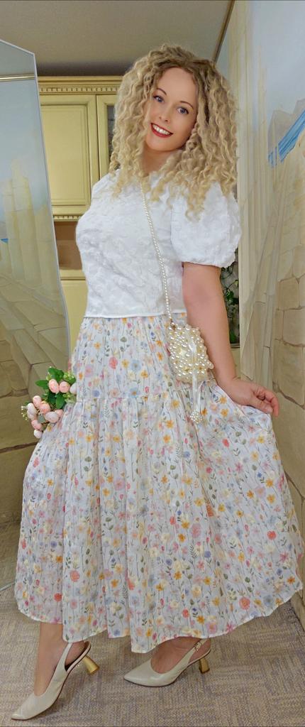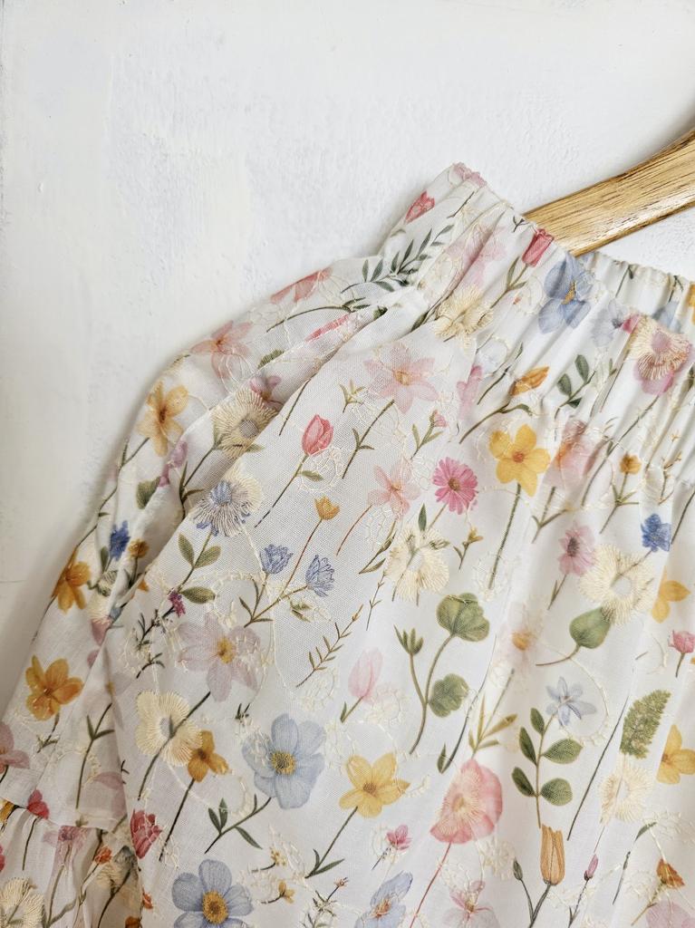 Japanese Mori Girl Spring Summer Women Midi Skirt Elastic Waist Colorful Floral Sweet Skirt Elegant Feminine Ladies' Pretty Skirt