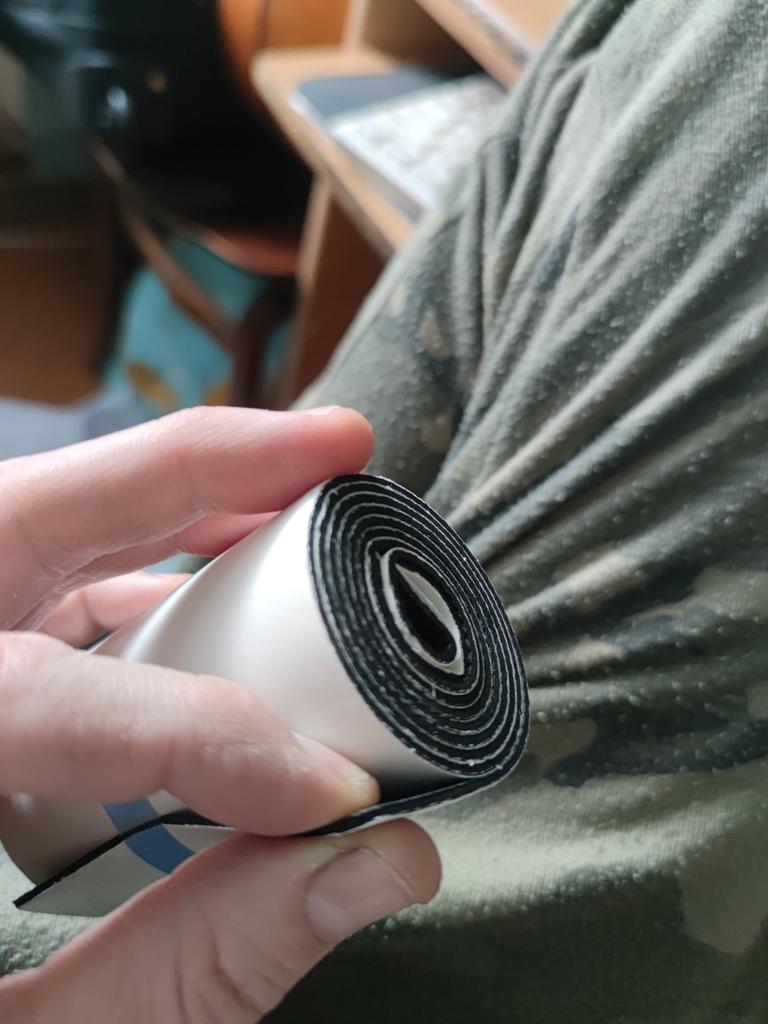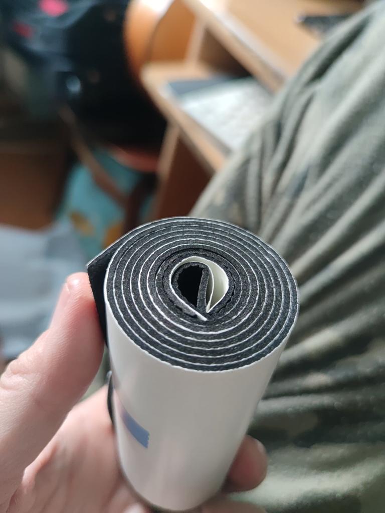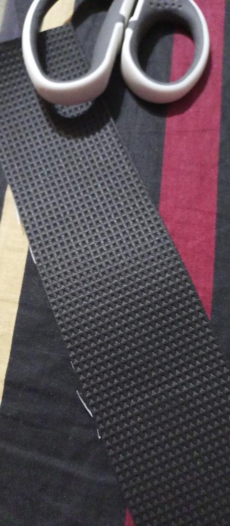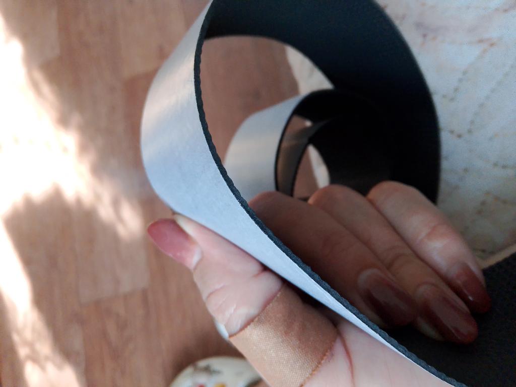 The adhesive layer adheres well to shoes. The width of the tape is 4.8 cm, the thickness is 1.8 mm. The material is lightweight, porous, and compresses under load. It will come in handy around the house. I haven't tested how non-slip it is. Thank you all for your work.