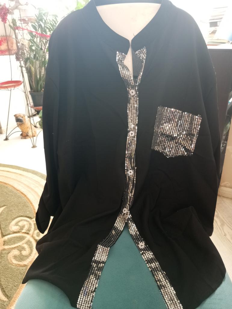 V-neck Sequin Mid-sleeve Casual Top Summer Women Blouses Casual Loose Collar Button Printed Sun Protection Pocket Shirt