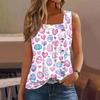 Women's Fashion Casual Basic Pleated Plain Button Square Collar Sleeveless Vest Print Summer Tank Tops