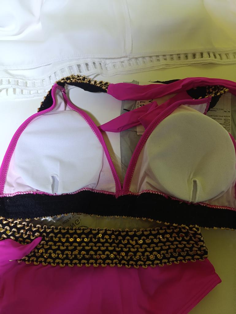 THE SWIMSUIT IS CURLY. I HAD TO RE-TAIL THE BRA A LITTLE. IT'S DESIGNED FOR A SMALL-BRISTLED GIRL.