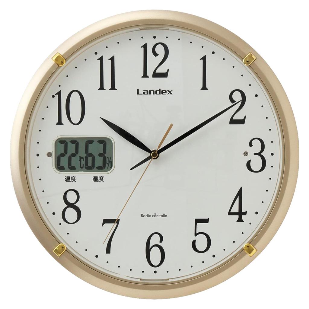 Landex Wall Clock Radio Controlled Clock Gold Soctel EX Analog Temperature Humidity with Light Second Hand Stops At Night Automatically Lights