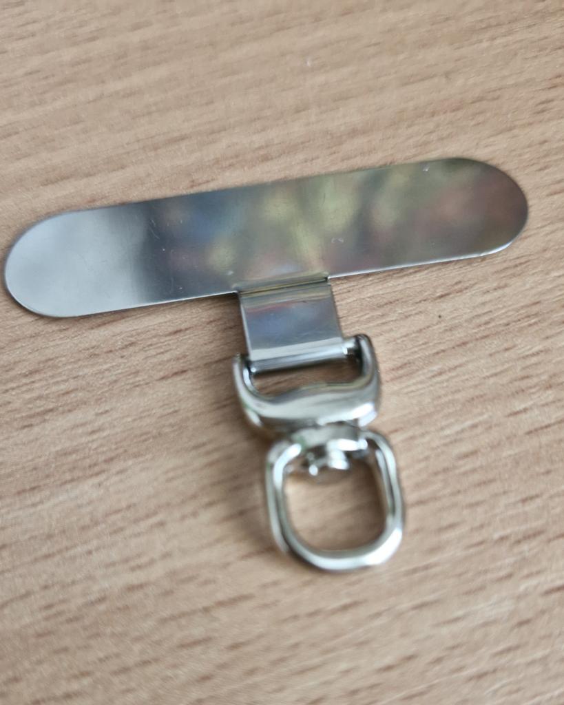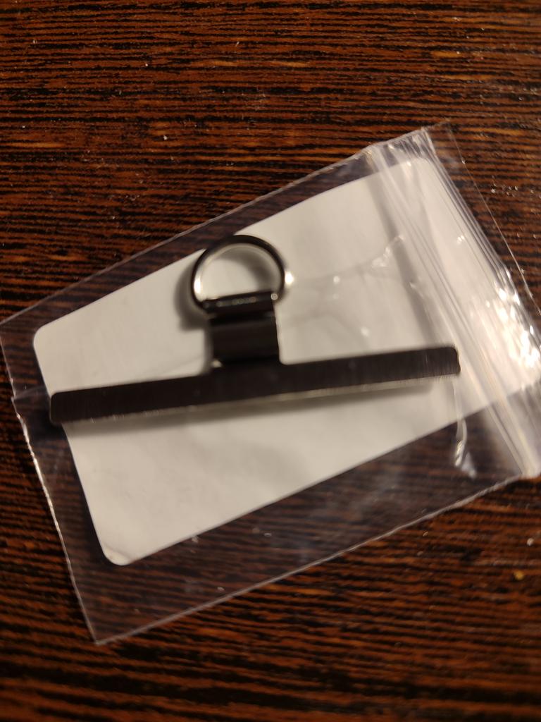 A metal thingy for a phone, you put it under the phone case so you can attach something, very thin, will be useful.