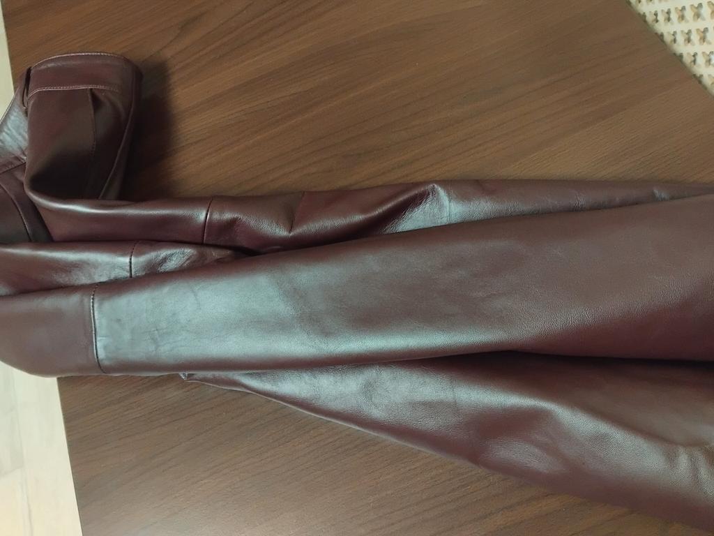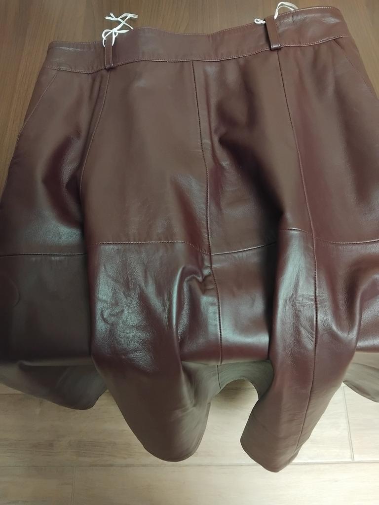 The skirt is gorgeous, the color is beautiful, the quality is super, the tailoring is perfect, the leather is natural, only I think it's a slightly different style and there's no separate belt. On the model a skirt with a belt and pleats are laid in front.