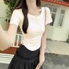 Summer Design Is Pure and Sweet Hot Girl Sexy U-neck Short-sleeved T-shirt Women's Irregular Short Top