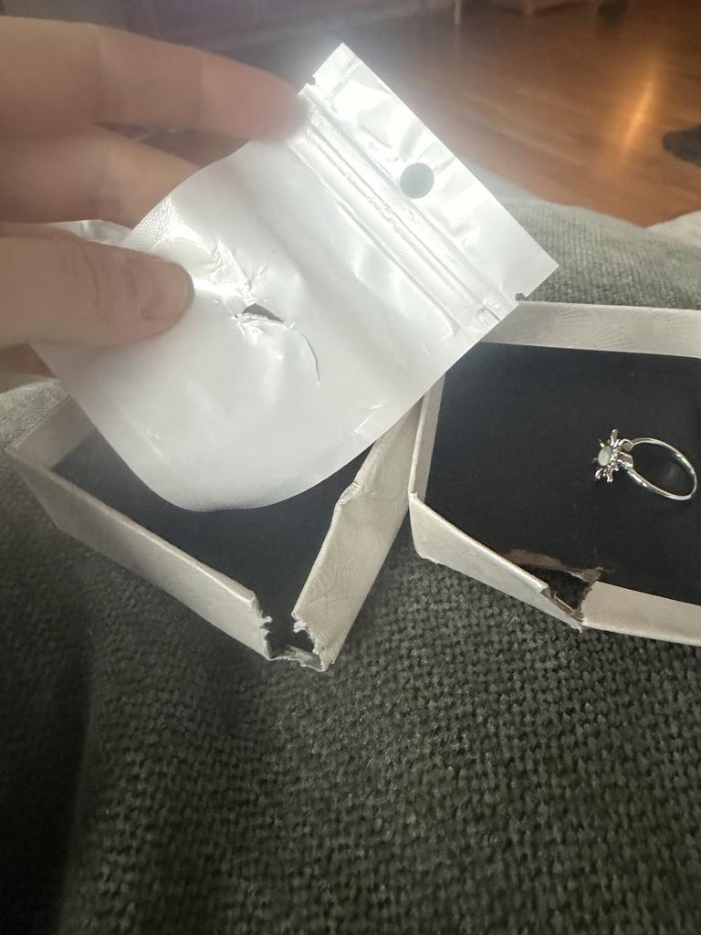 Difficult to get on film with one hand, but the sun is very loose. It was lying outside the bag and the box was crushed.
