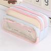 Cream Pencil Bag Pen Case Hitting Color Blocked Staged Type Transparent Front Pocket Storage Pouch for Stationery