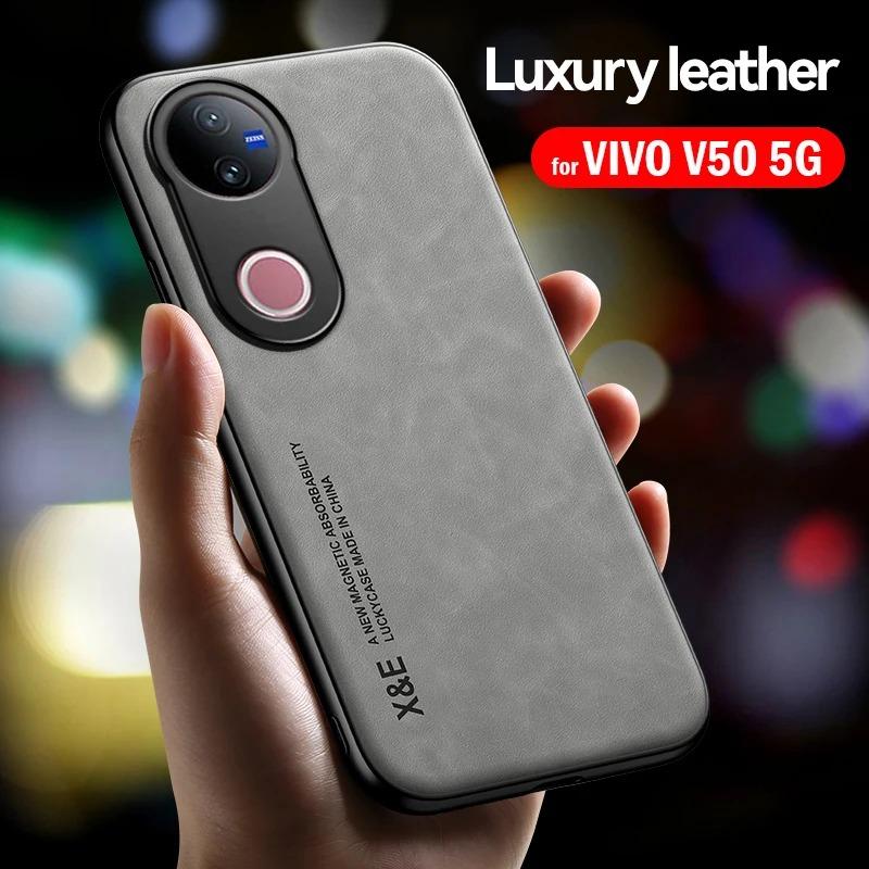 For Vivo V50 5G PU Leather Car Magnetic Holder Silicone Back Cover For VIVO V50 5G Built-in Iron Protection Phone Case