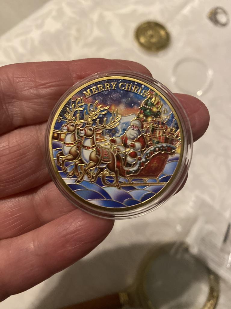 Christmas Eve Commemorative Coin, Santa Claus Commemorative Coin, Color Printed Commemorative Medal, Holiday Christmas Gift
