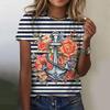 Summer Women Trend T-shirt 3D Printed Floral Stripe Tops Tees Female Fashionable Short Sleeve Clothing Casual Stylish Outfit