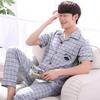 Men's 100% Cotton Short-Sleeved Pajama Set - Lightweight Summer Trousers