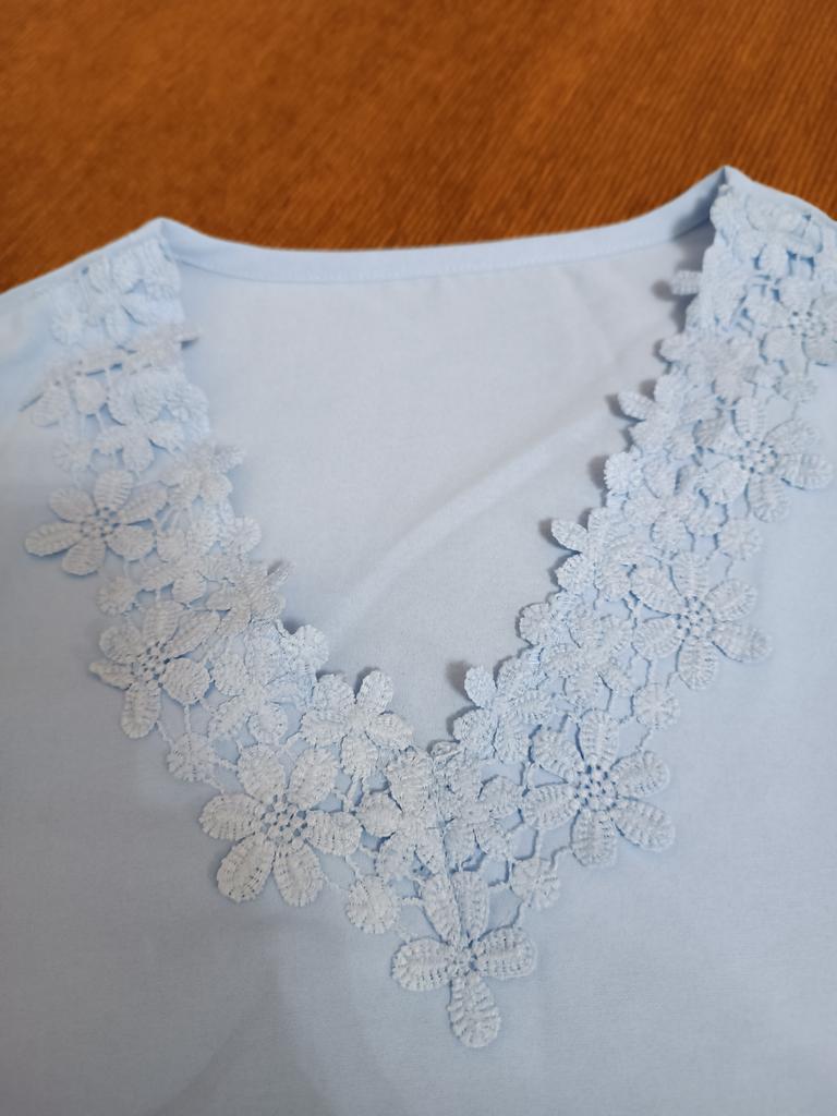 VEZFAA Women's Fashion Casual Summer Spring Solid Color Print Short Sleeve V-Neck Blouses & Shirts