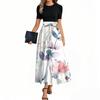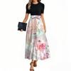 Women's Elegant Fashion Floral Print Belted Short Sleeve Round Neck Splicing Casual Dress
