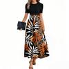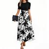 Women's Fashion Casual Belted Round Neck Short Sleeve Floral Patchwork Elegant Dresses