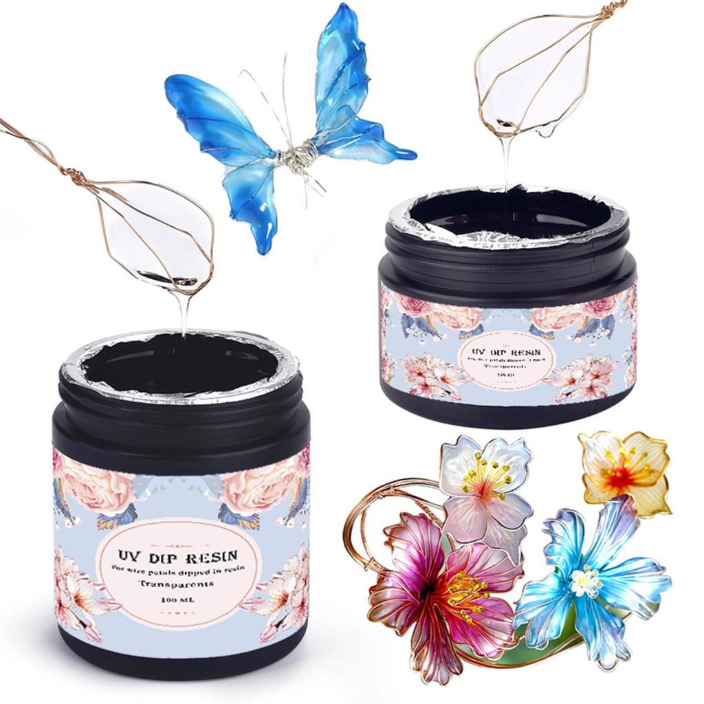 Practical UV Dip Resin Set 50g/100g Crystals Clear Epoxy for Flower Decoration and Jewelry Making with 13 Wires