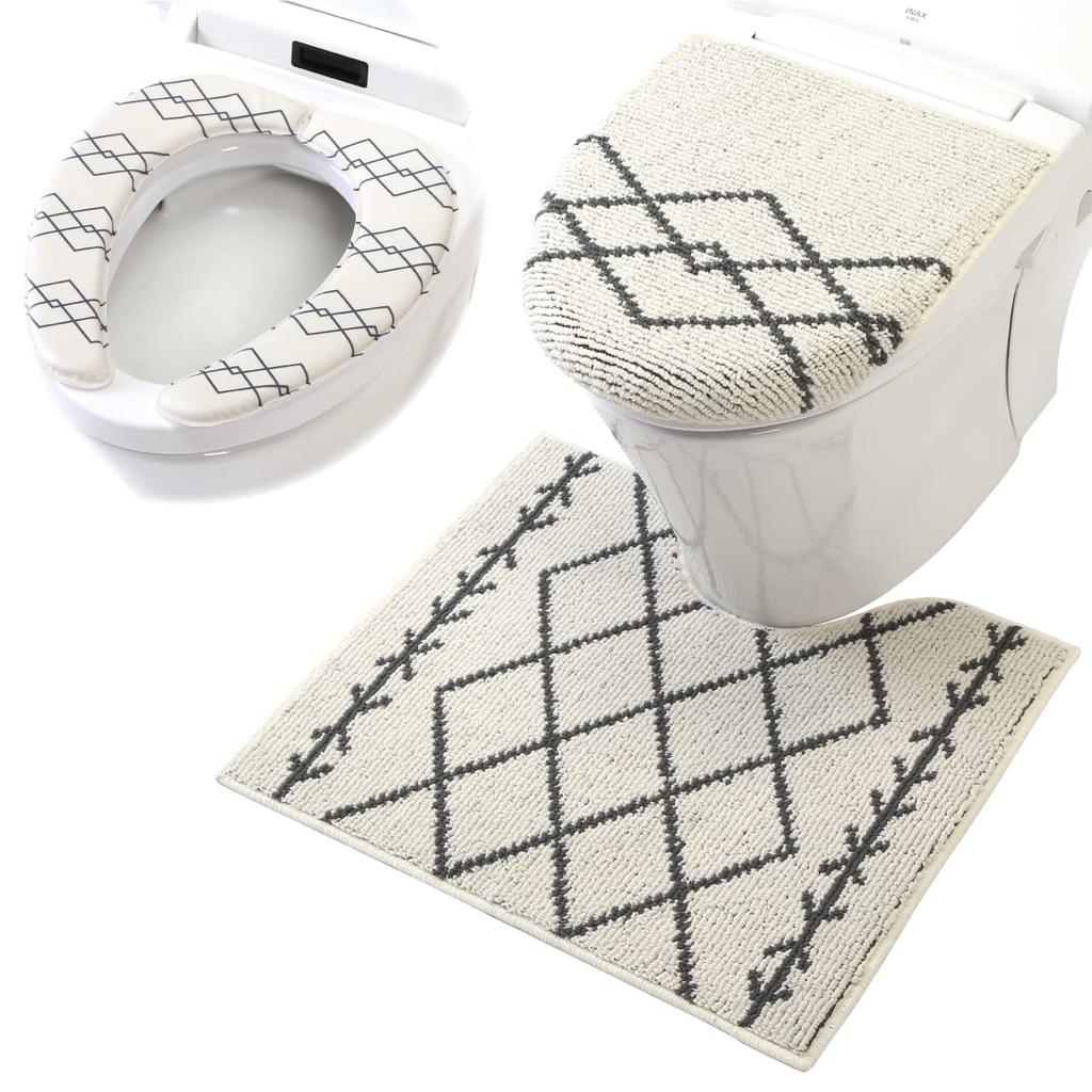 Yokozuna Creation Toiletries Mat Lid Cover Toilet Seat Cover Wallen (Toilet & & 3-piece Set) (Beni Ivory, Regular)