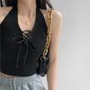 Summer Spice Style Design Sense V-tie with Slim Halter Vest Knitted Halter Top with Chest Blouse