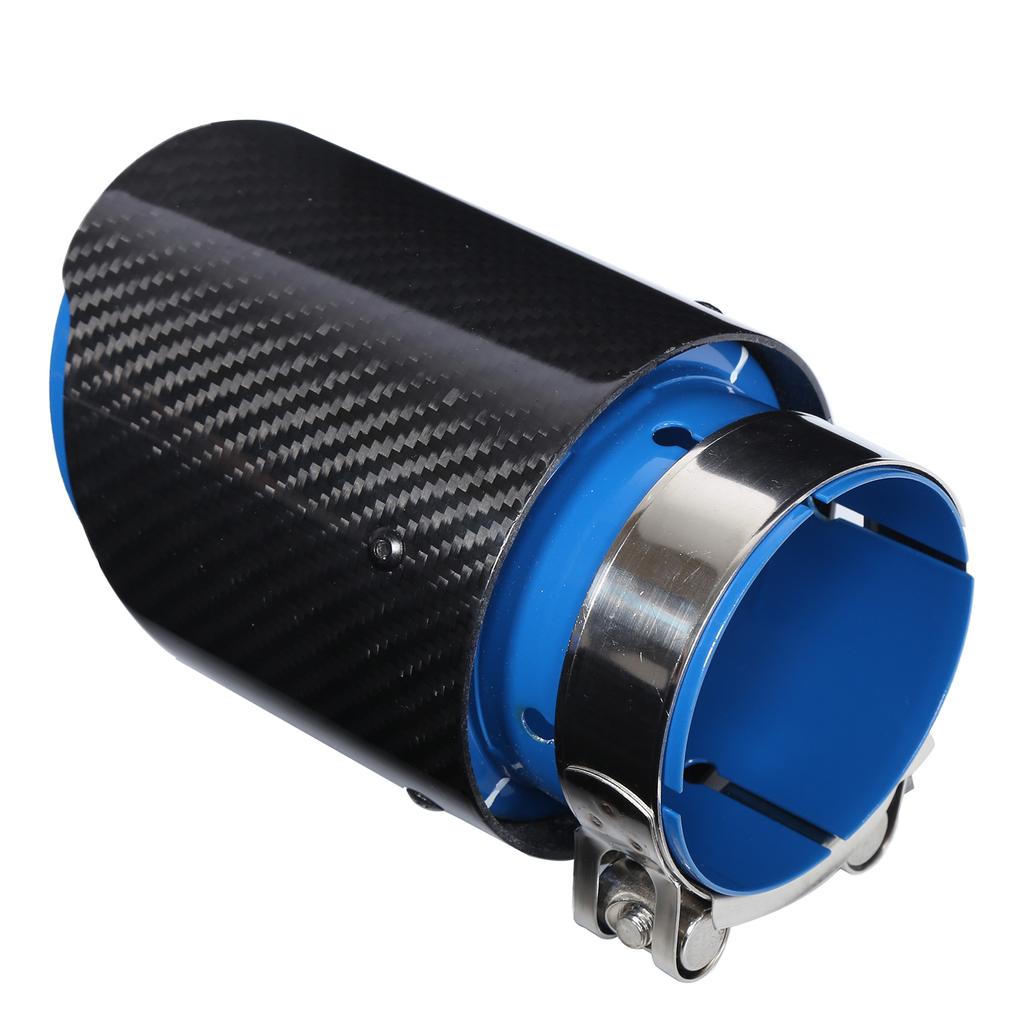 Universal Exhaust Tip Tail Throat Glossy Carbon Fiber Blue Pipe Straight 2.1in Inlet 4in Single