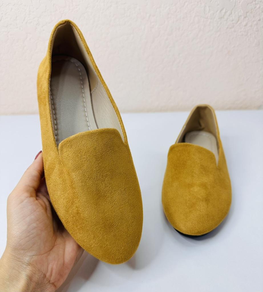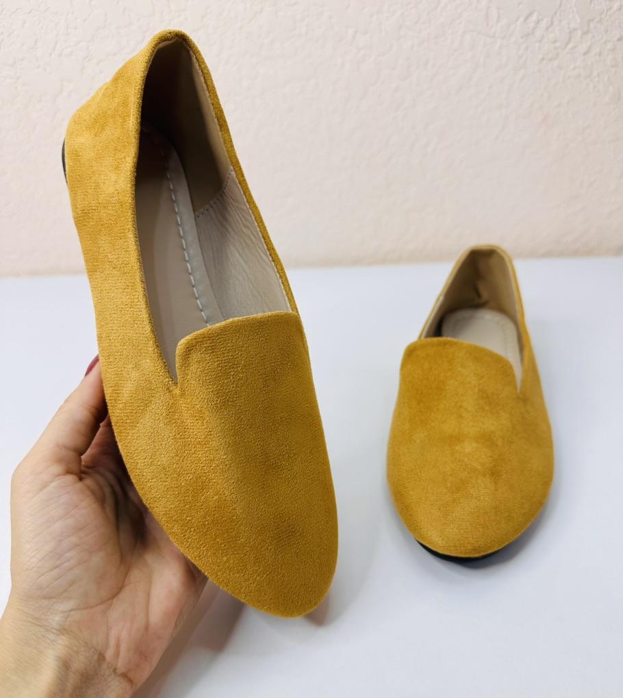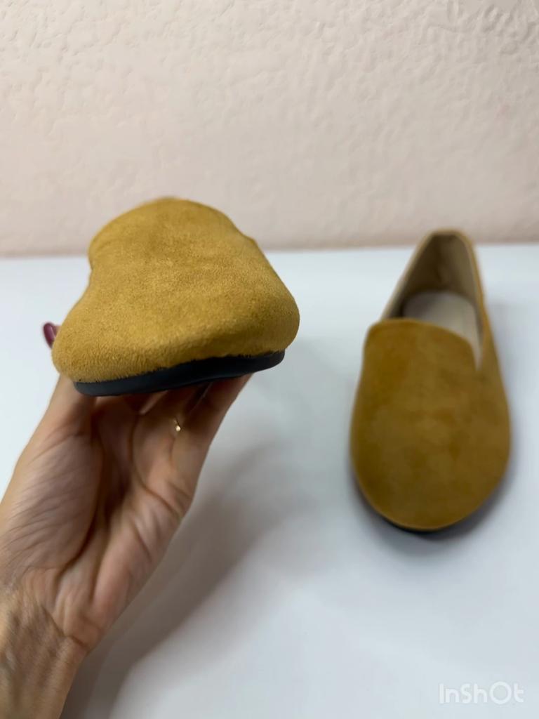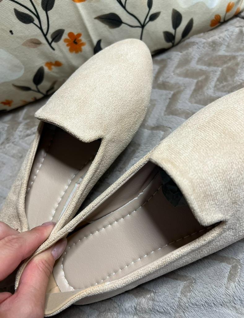 Women's ballet flats made of artificial suede are elegant and comfortable shoes that will be a wonderful addition to any look. The soft and pleasant to the touch artificial suede gives the ballet flats sophistication, and the color makes them versatile, allowing them to be easily combined with various clothing styles - from classic to casual. The lightweight sole ensures comfort when walking, and the simple but stylish design adds sophistication. These ballet flats are ideal for summer walks, work, or evening outings when you want to look stylish and feel comfortable.. A large selection of different colors. Sizes: from 36 to 43. Definitely recommend.
