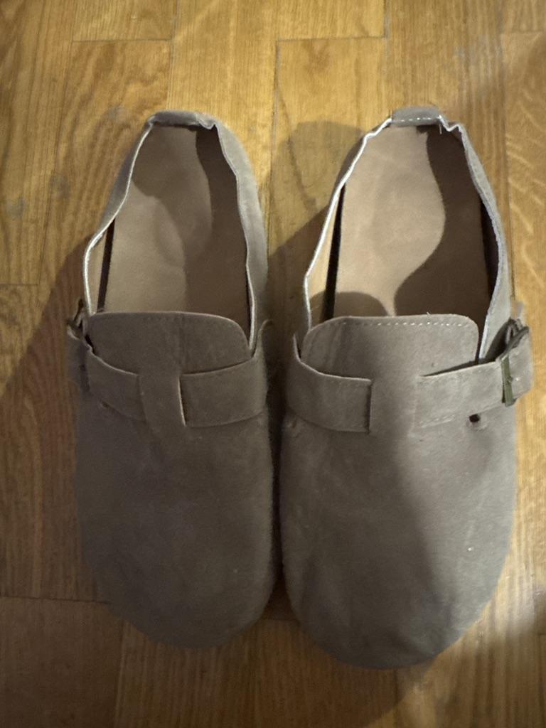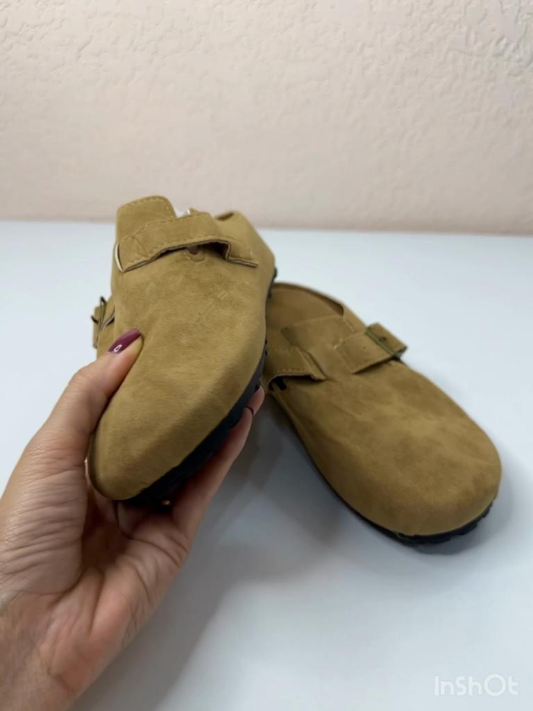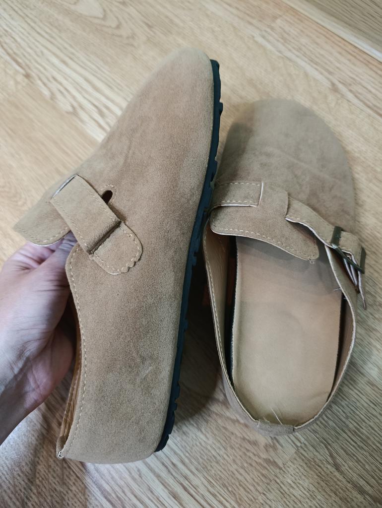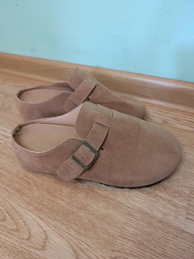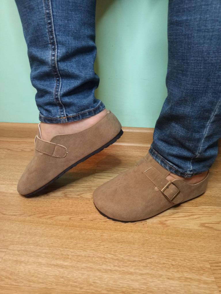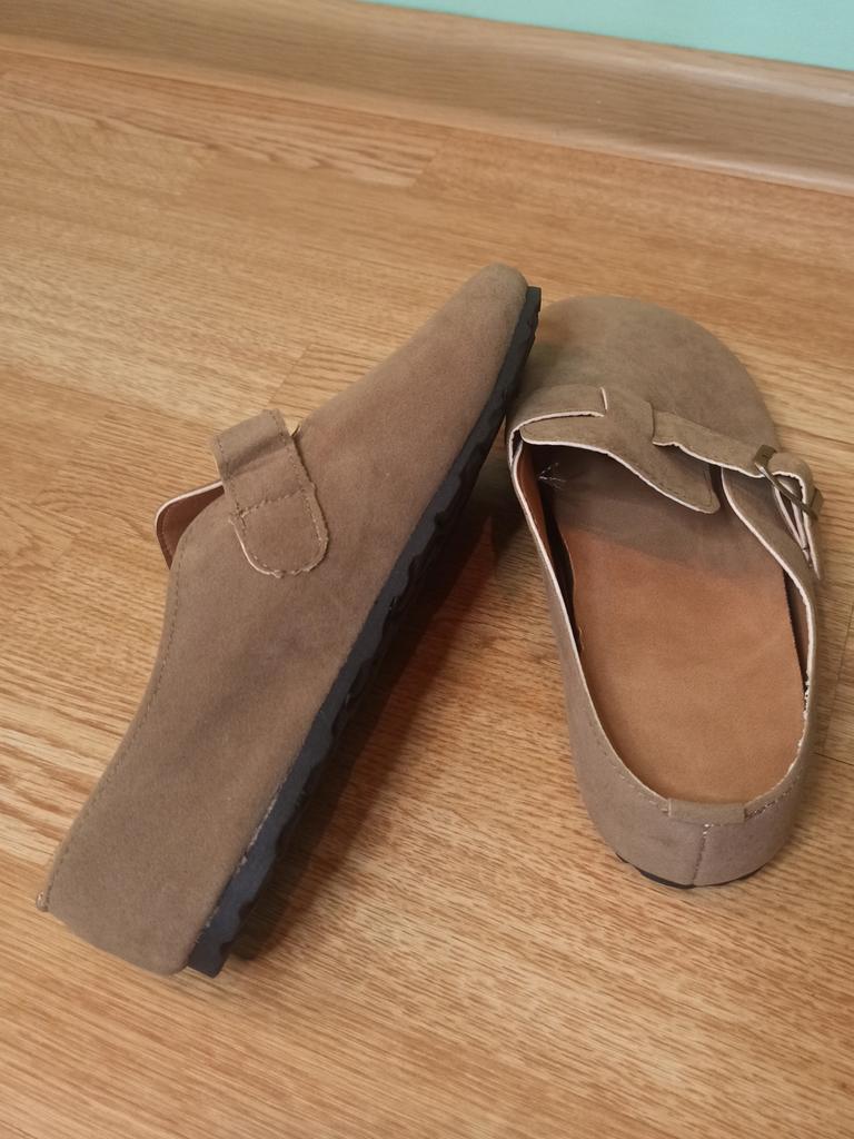Women's clogs Interesting pair of shoes, they look nice. For a foot of 24.5 cm, I took size 39. Made of suede-like material. They go on a thick sole. Don't fall off while walking, comfortable. There are different colors to choose from.