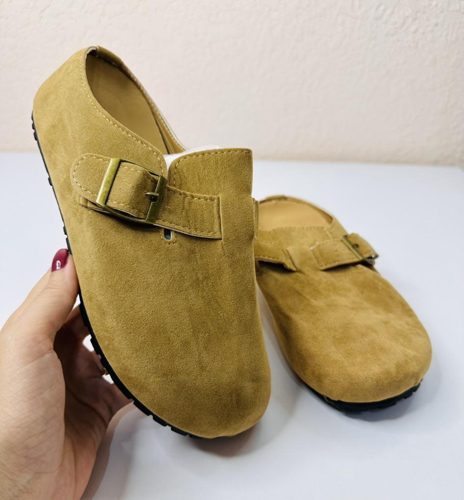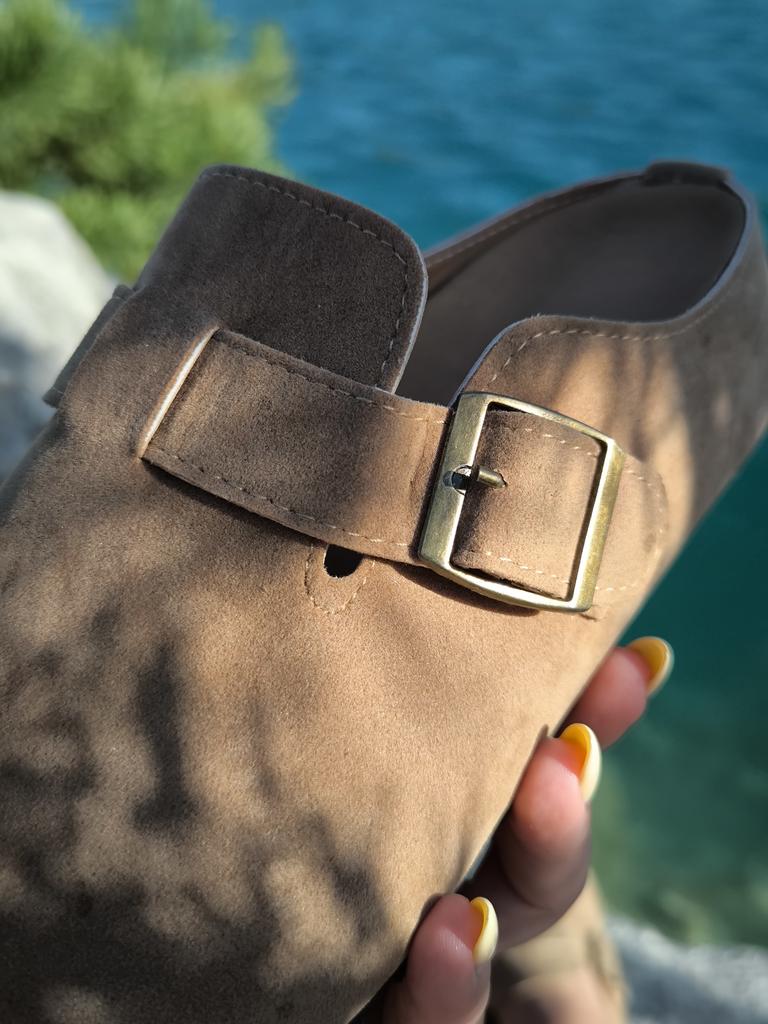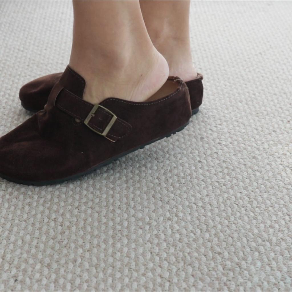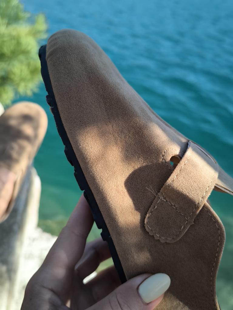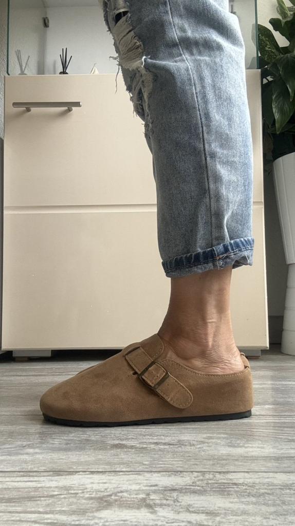 Women's clogs Interesting pair of shoes, they look nice. For a foot of 24.5 cm, I took size 39. Made of suede-like material. They go on a thick sole. Don't fall off while walking, comfortable. There are different colors to choose from.