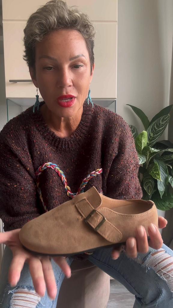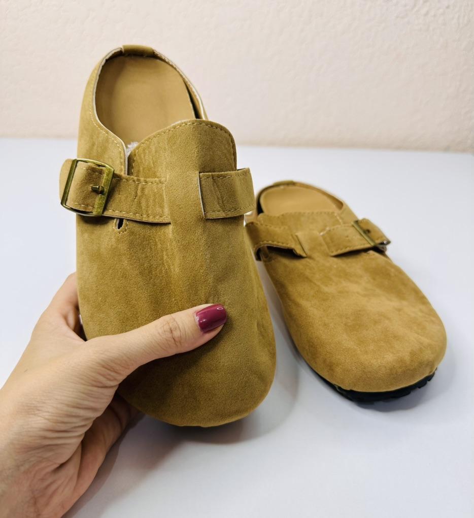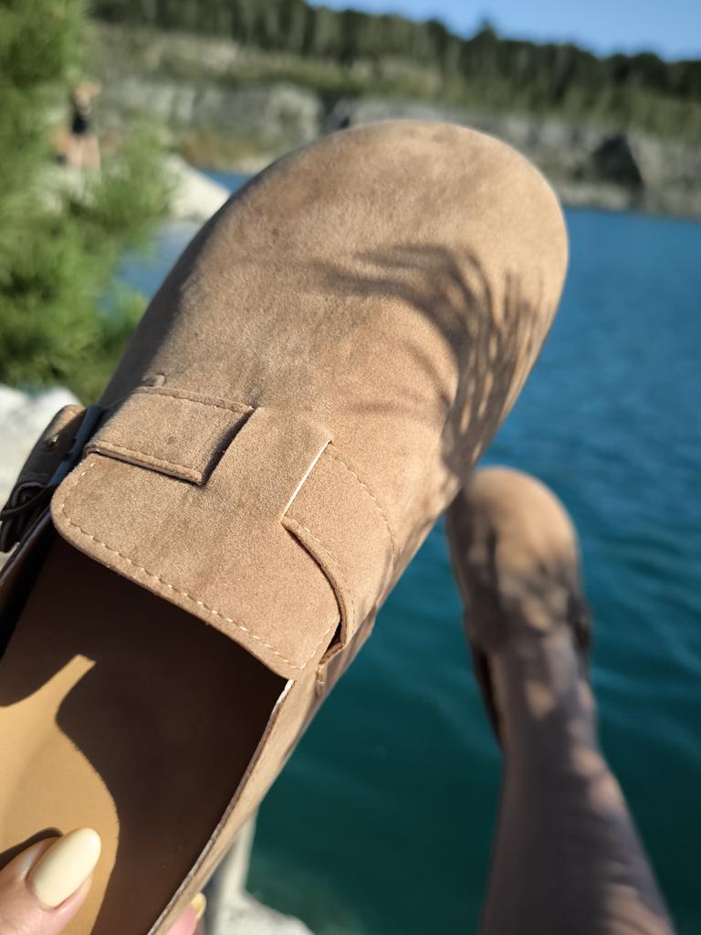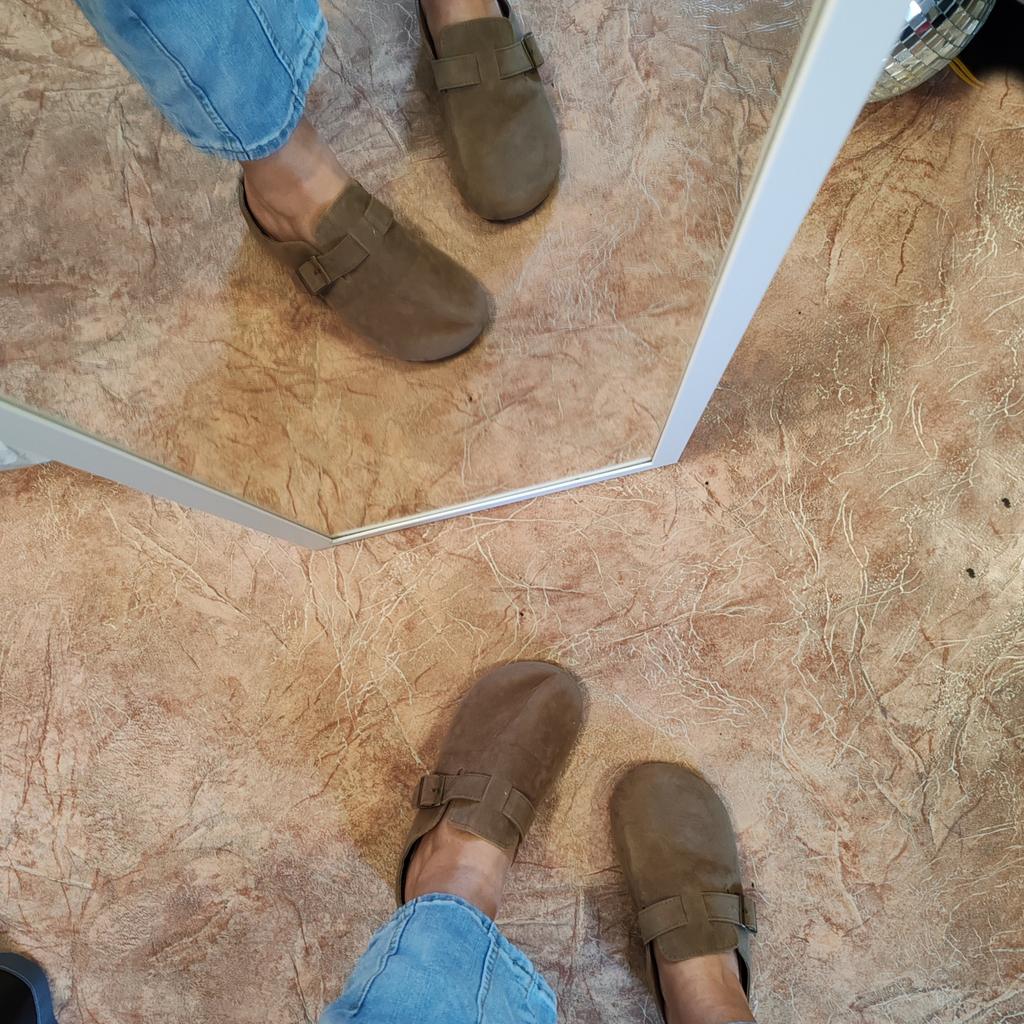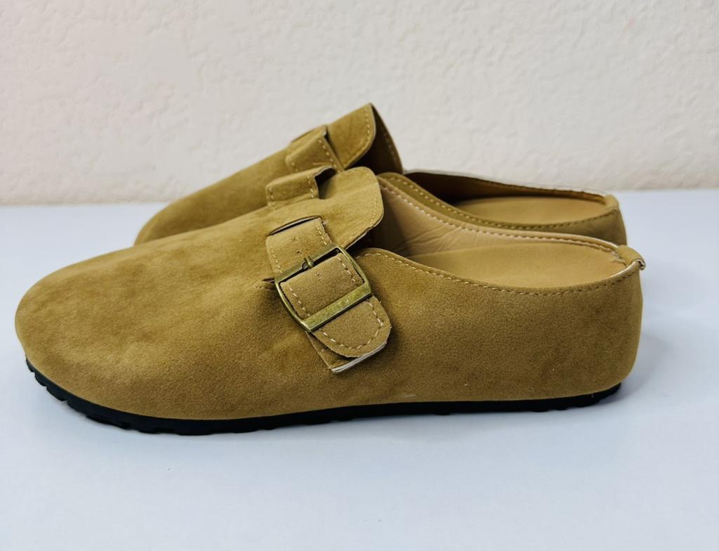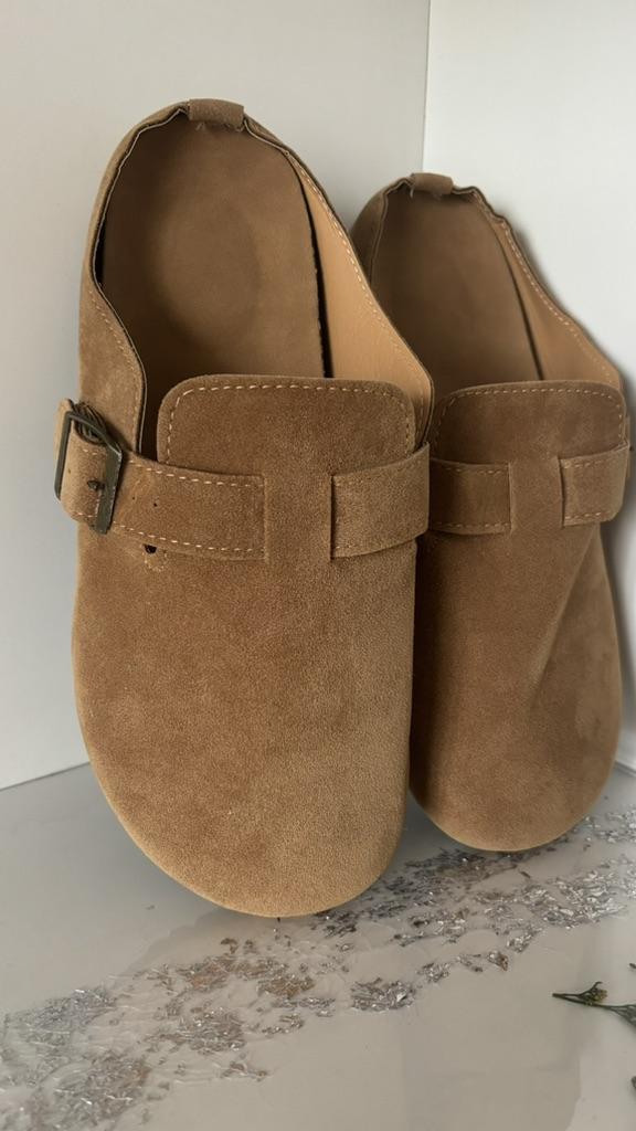 Women's clogs Interesting pair of shoes, they look nice. For a foot of 24.5 cm, I took size 39. Made of suede-like material. They go on a thick sole. Don't fall off while walking, comfortable. There are different colors to choose from.
